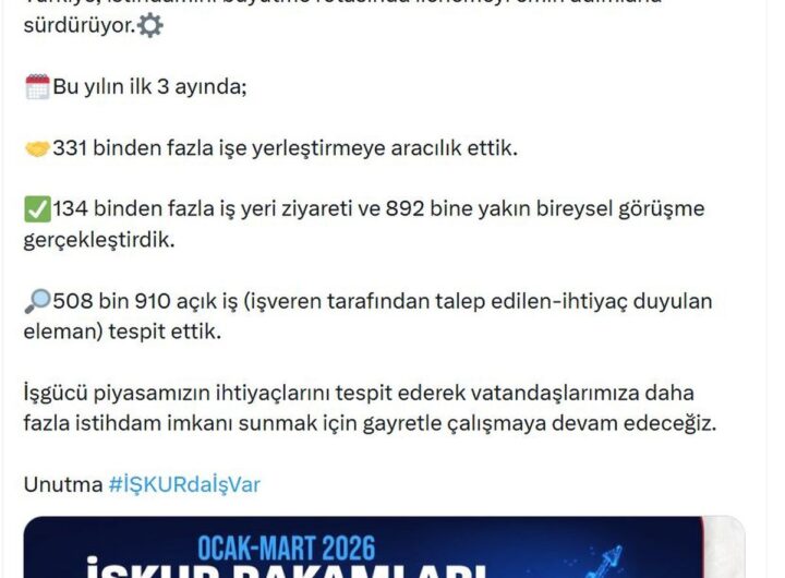 Çalışma ve Sosyal Güvenlik Bakanı Vedat Işıkhan, 2023 yılının ilk çeyreğinde 331 binden fazla kişinin işe yerleştirildiğini...