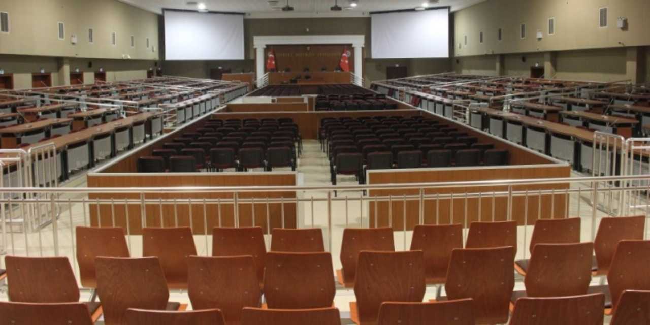 Habere göre 3 bin 240 metrekare büyüklüğündeki tek parça salon, 2 bin 295 kişi kapasiteye sahip olacak ve tamamlandığında Türkiye’nin en büyük yargılama alanı olacak.