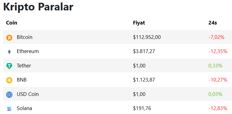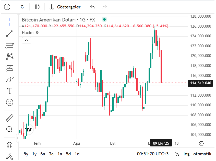 Piyasa değeri bakımından dünyanın en büyük kripto para birimi olan Bitcoin yüzde 8,13 düşüşle 111 bin 530 dolara geriledi.